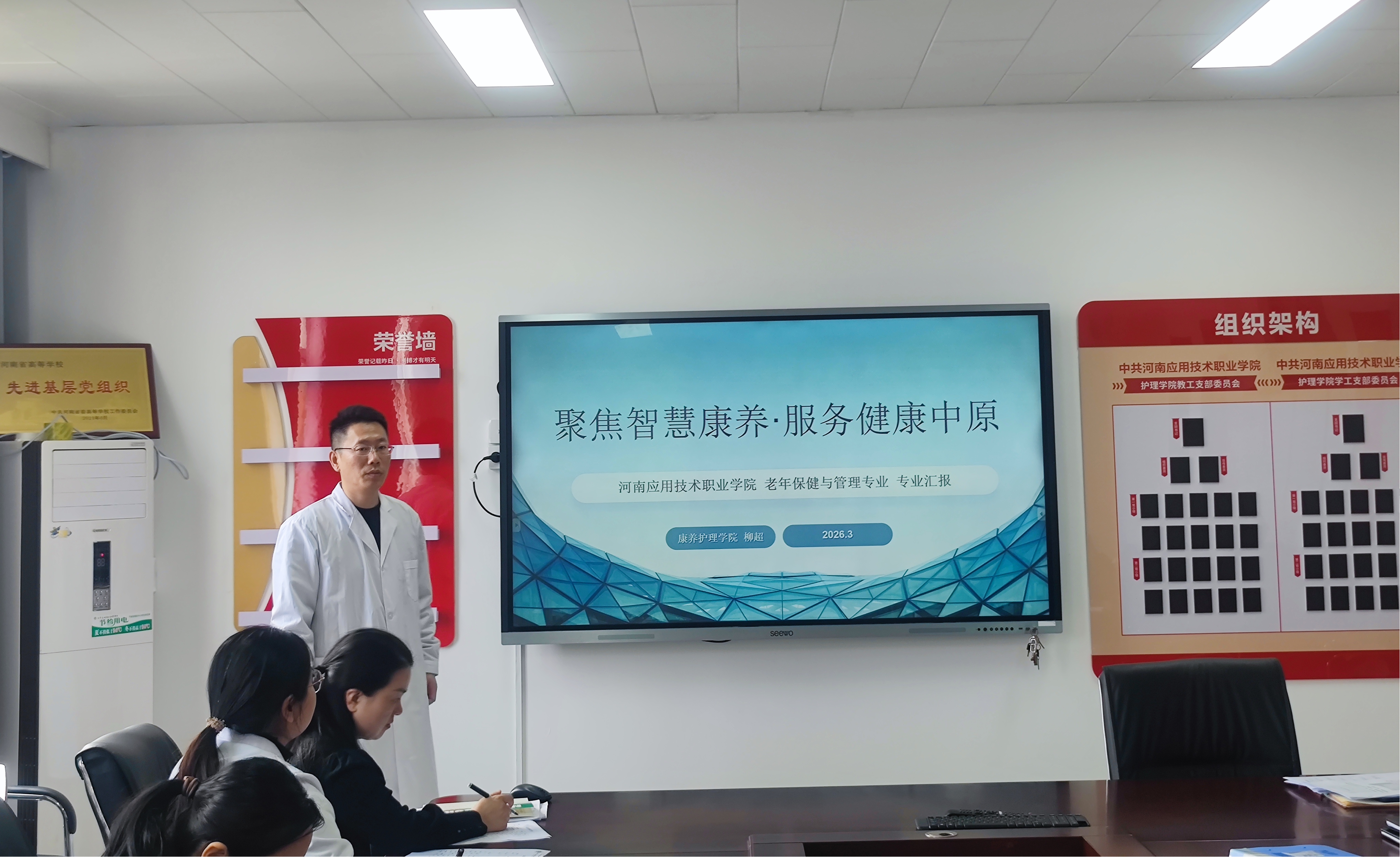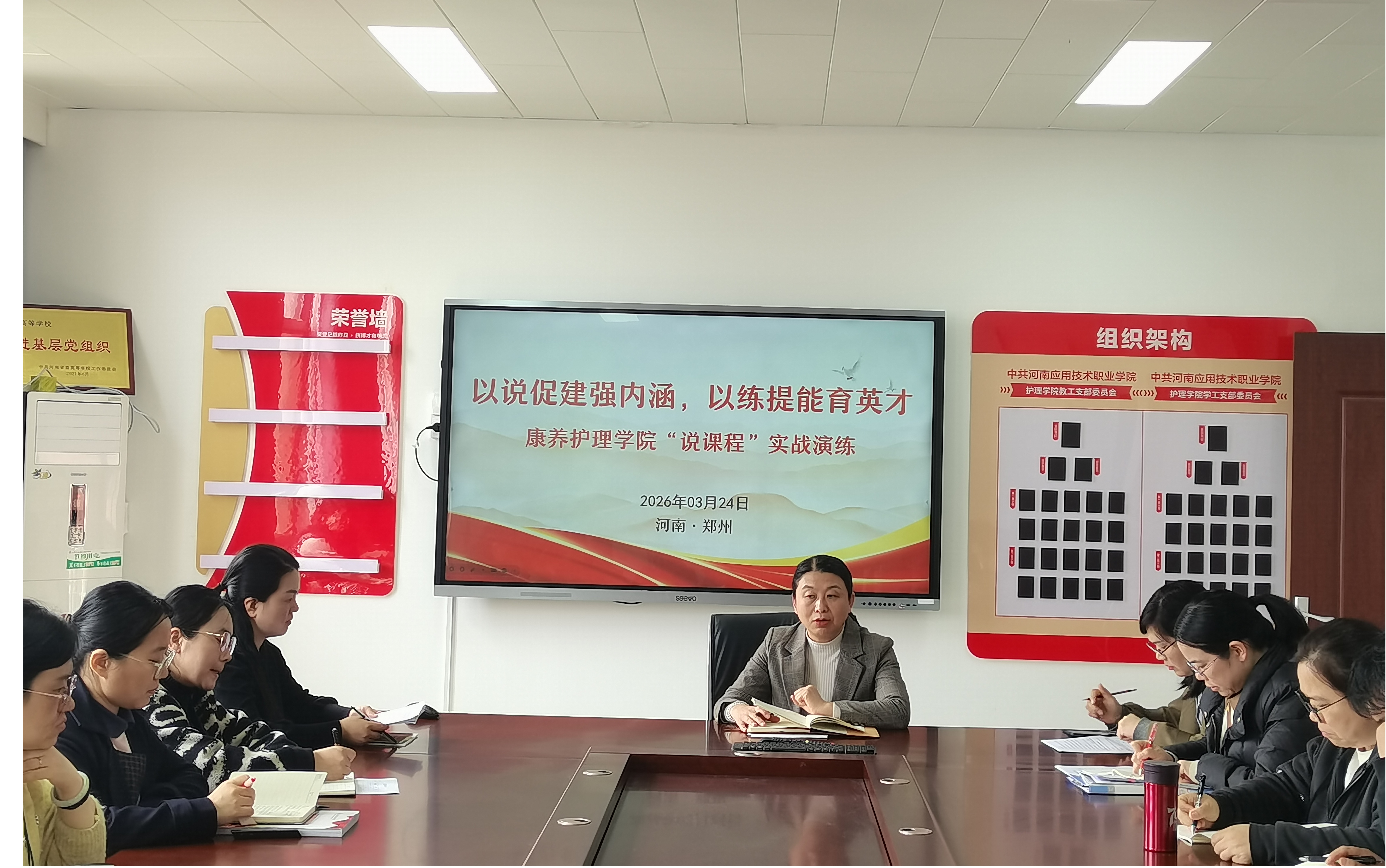 为稳步推进学校办学能力评价筹备工作,全面提升教师教学能力与课程建设水平,3月24日,康养9428cn太阳集团在办公楼515会议室举行“说课程”研讨活动。此次活动由康养9428cn太阳集团院长王风云主持,全体专兼职教师积极参与,共同营造了一场教学相长、互促共进的教研盛宴。