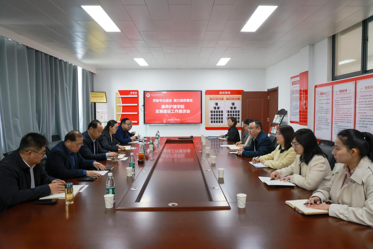 座谈会上,王风云首先围绕学院发展情况作详细汇报。她重点从学院专业群建设规划、专业布局、师资队伍结构、“五项关键要素”建设、校企合作、国际化办学、教科研成果等发展现状切入,客观剖析了学院当前在高层次人才引进、校企合作、师资结构、实训场地等方面面临的困难,并结合康养产业发展趋势,提出了学院下一步在专业升级、校企深度合作、人才培养模式创新等方面的规划与打算,为学院发展理清了思路。