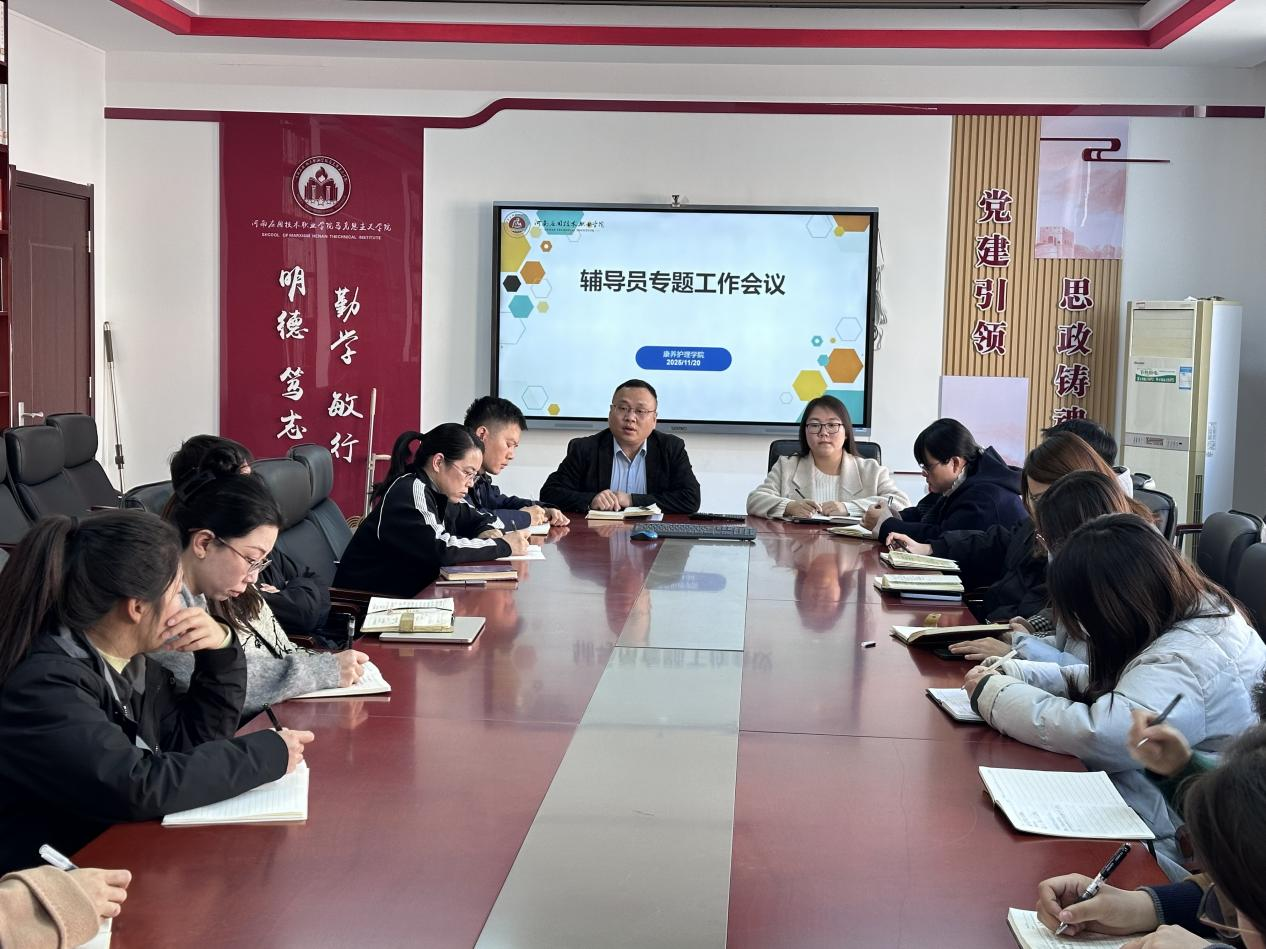 其次为激发学生职业规划意识,提升就业竞争力,会议同步部署大学生职业生涯规划大赛筹备工作,动员全体辅导员在班级、宿舍做好宣传动员,鼓励全体在校生积极参与,以赛事为载体,帮助学生梳理职业目标、提升职业素养,为未来就业创业夯实基础。