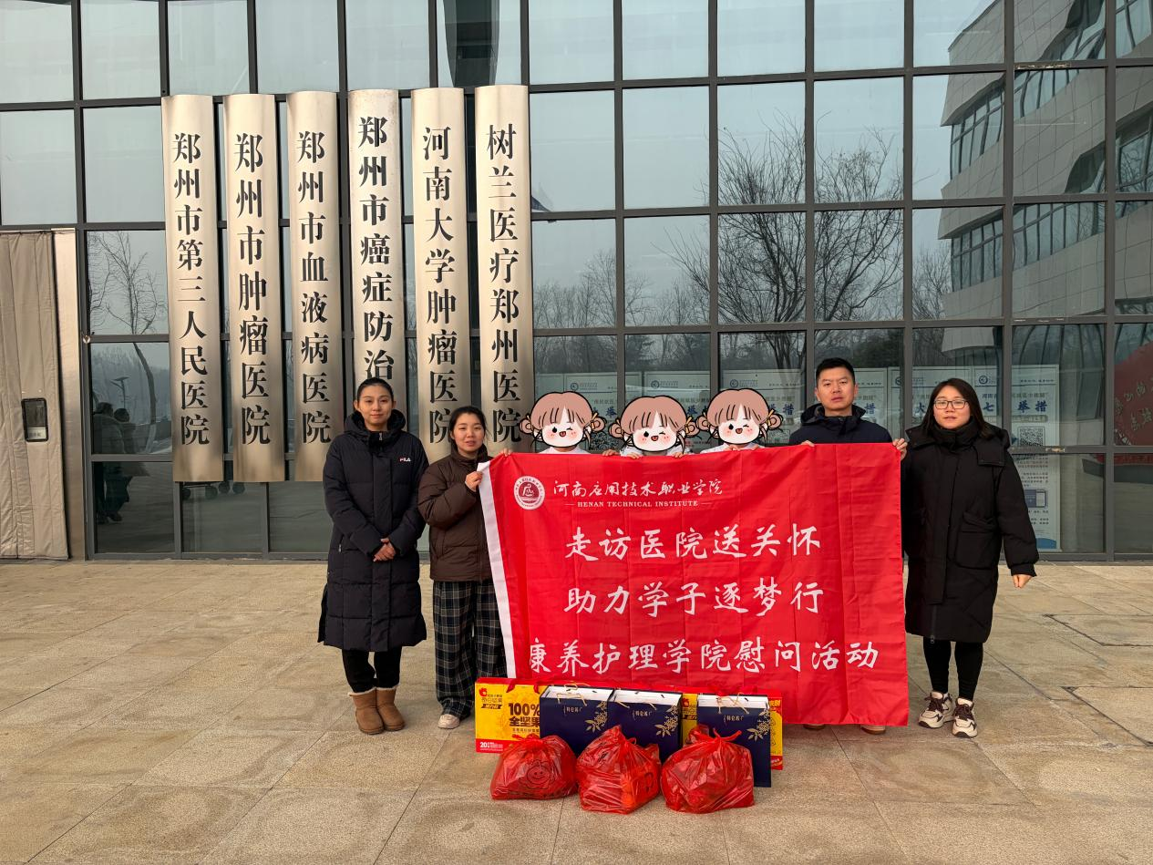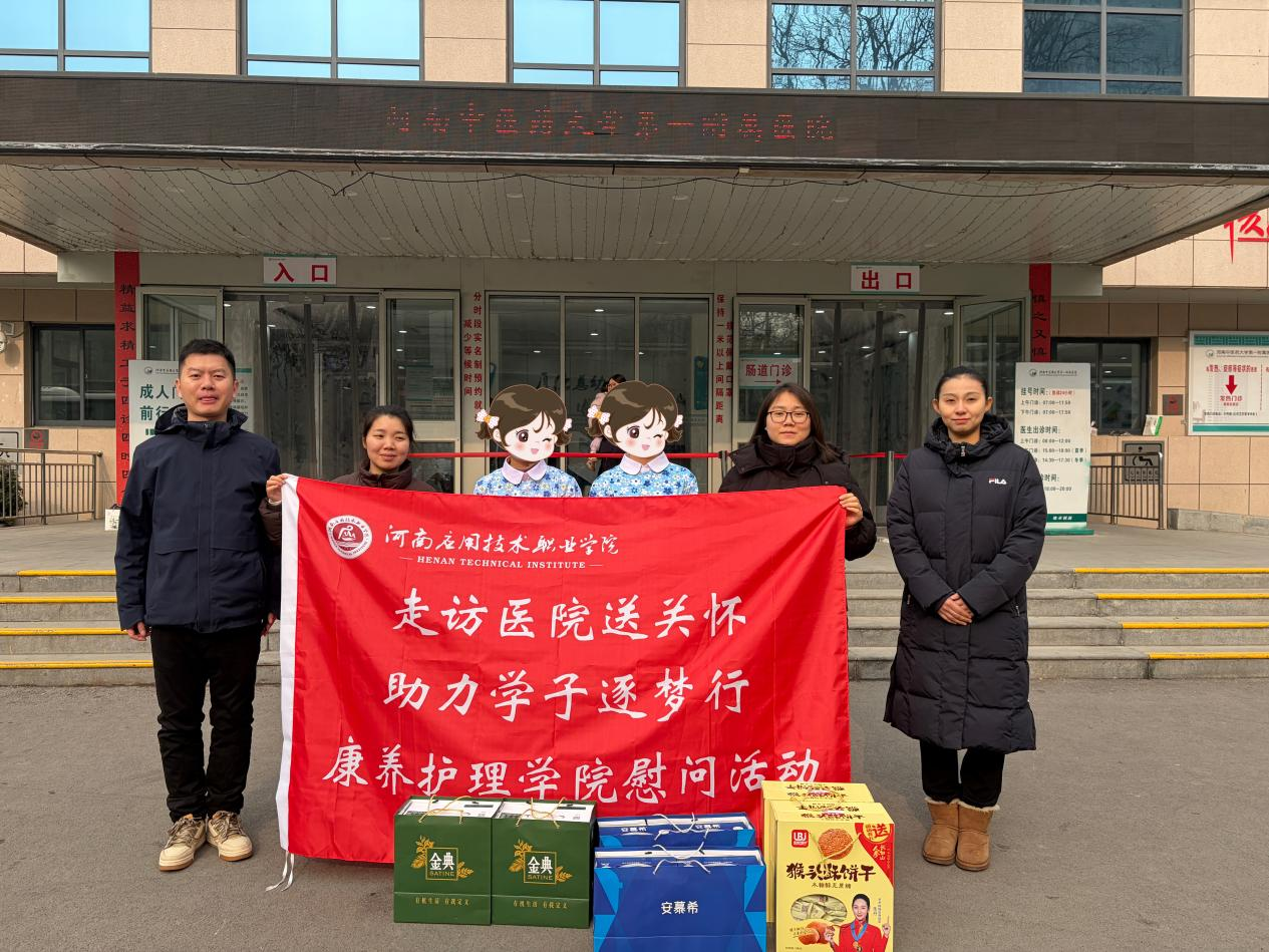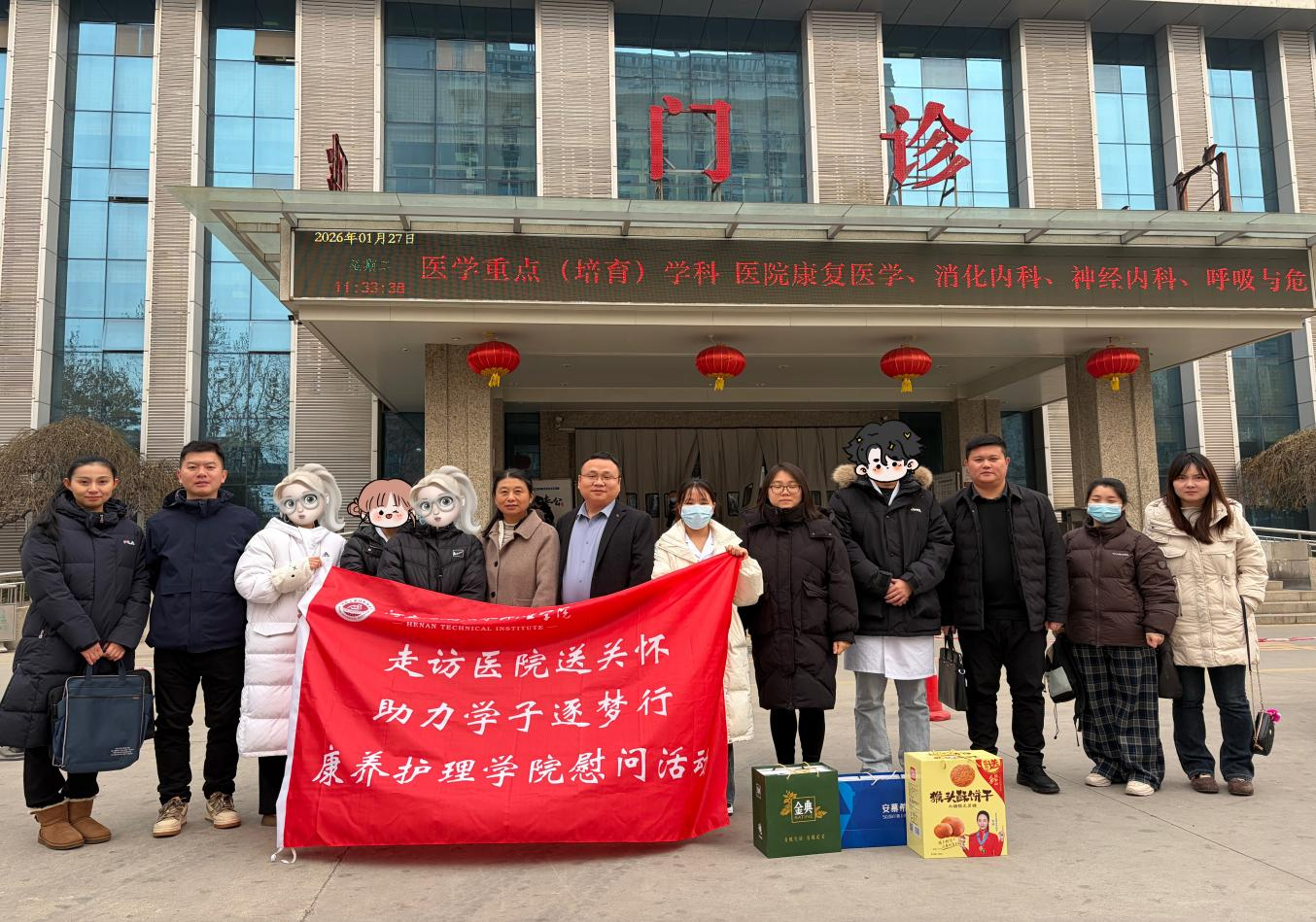 为深入贯彻落实立德树人根本任务,切实关心关爱实习阶段家庭经济困难学生的学习生活与职业发展,2026年1月27日,康养9428cn太阳集团教师团队在党总支书记张忠勇、院长王风云的带领下分赴郑州大学第二、第三附属医院、郑州市第三人民医院、郑州市中心医院、河南中医药大学第一附属医院等多所三甲医院,开展走访慰问岗位实习贫困生活动,将学院的温暖与牵挂精准送达。