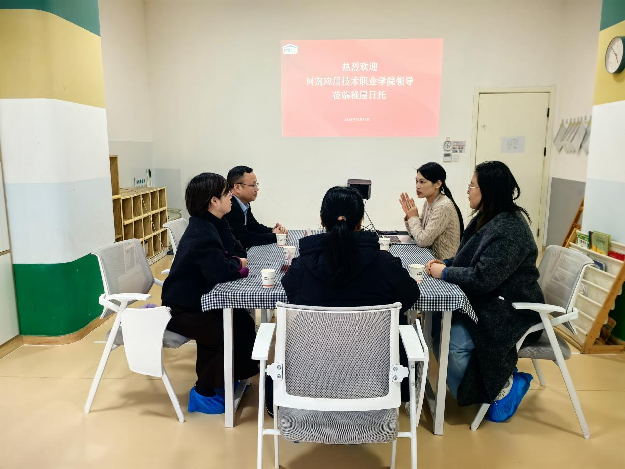 为精准对接托育行业人才需求,深化产教融合,12 月 10 日,康养9428cn太阳集团书记张忠勇带队赴稚屋日托考察交流。助产教研室主任李伟宏、婴幼儿托育服务与管理专业负责人孟醒、专业课教师张涛随行,与机构负责人张笑洋经理就学生实习及订单班事宜深入沟通。