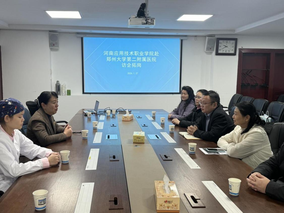 为进一步拓宽毕业生就业渠道,加强校企合作育人实效,1月27日,河南应用技术职业学院康养9428cn太阳集团党总支书记张忠勇、院长王风云带领实习指导教师团队先后赴郑州大学第二附属医院、郑州大学第三附属医院开展访企拓岗专项行动,并走访慰问实习学生,深入了解学生实习情况,推动产教融合向纵深发展。